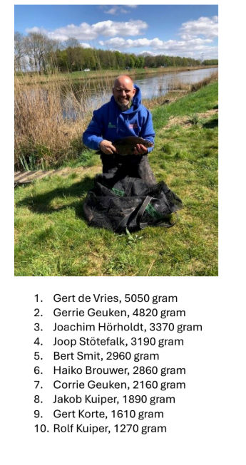 Gert de Vries middenin het vak net iets meer gewicht te hebben gevangen, namelijk 5050 gram,