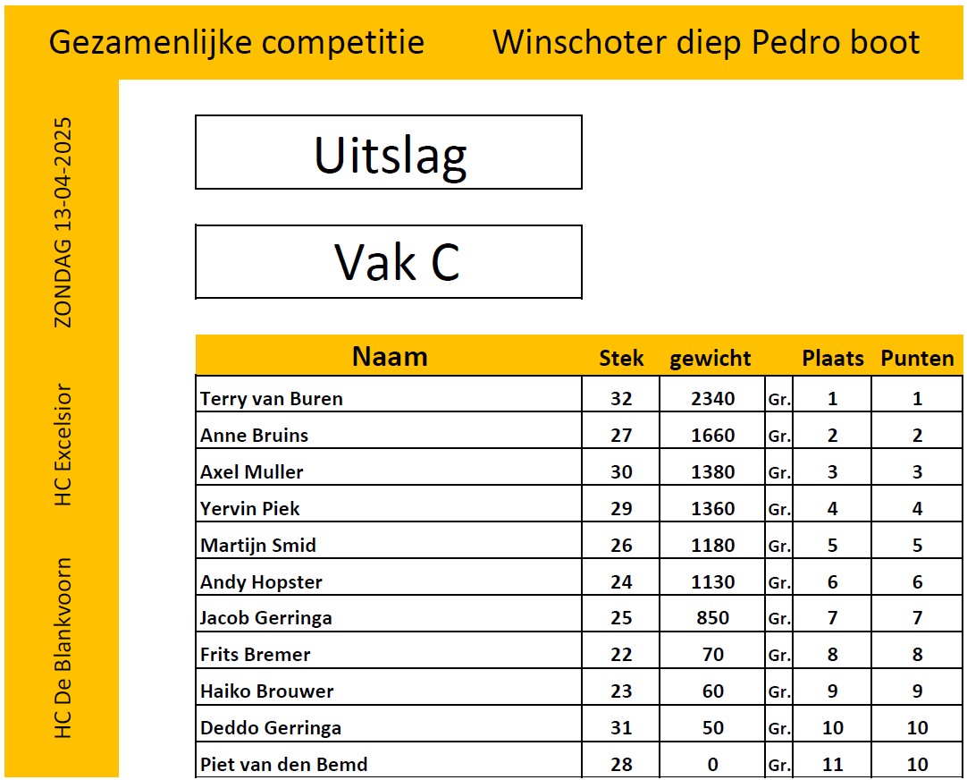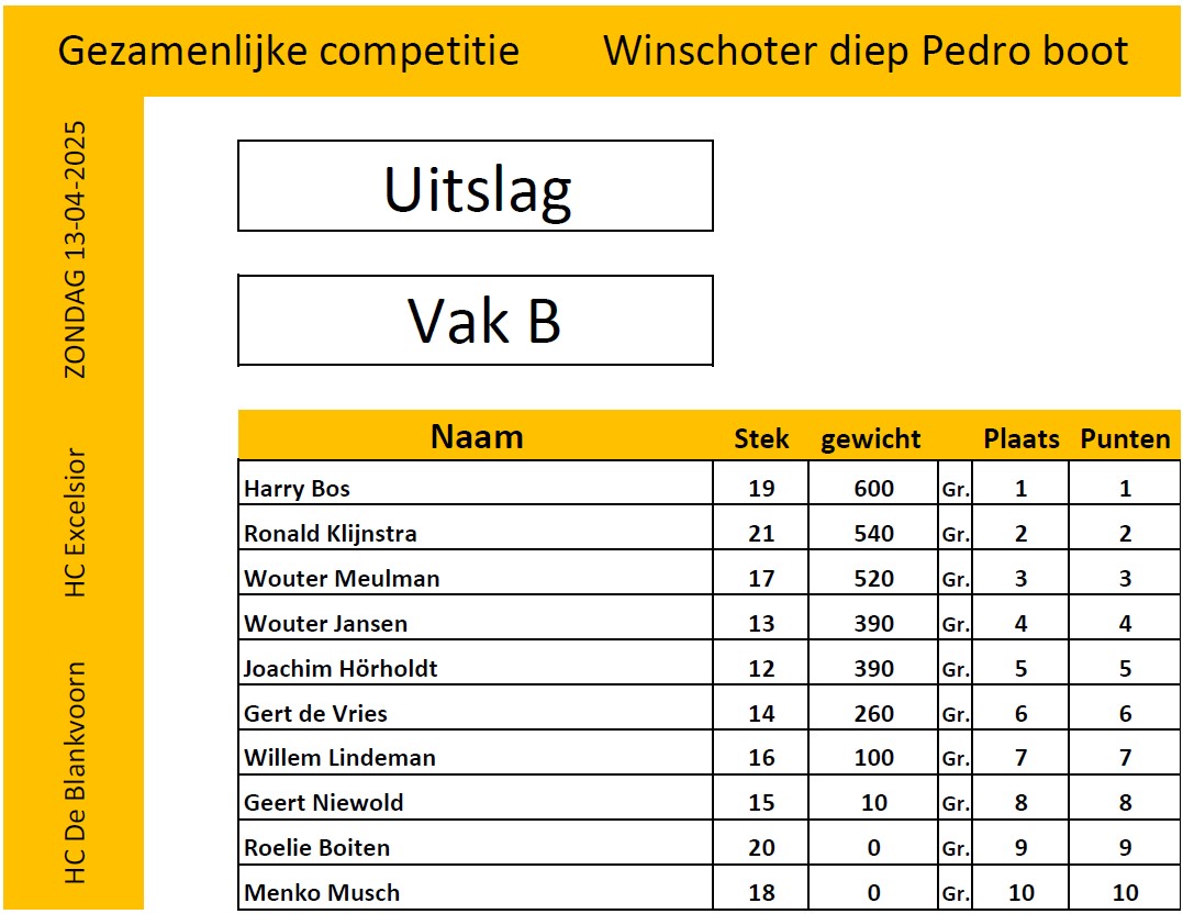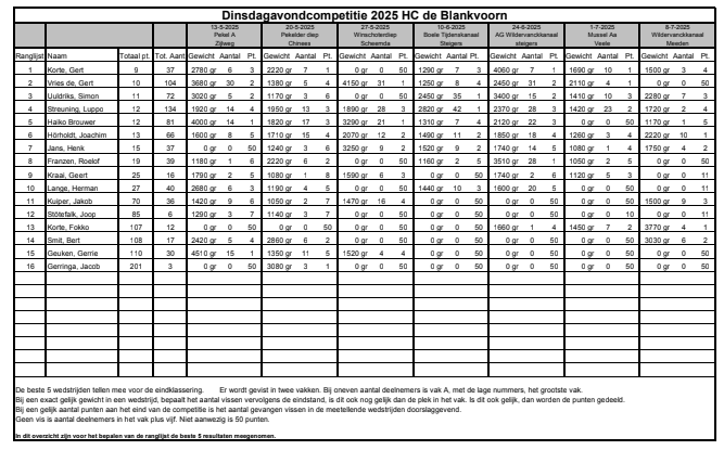 Zaterdag 21 september is de jaarlijkse wedstrijd om de Blankvoorbokaal gevist.