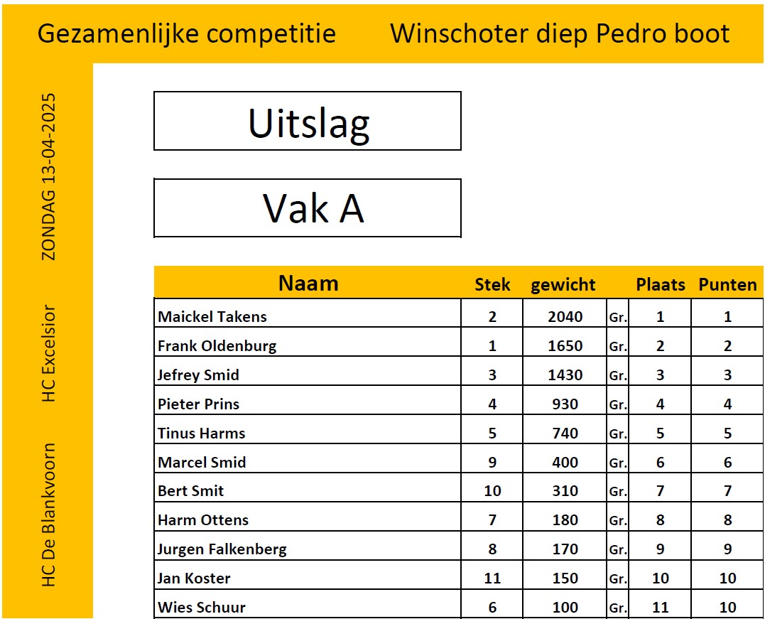Op zaterdag 19 april vertrokken 10 vissers van HC de Blankvoorn naar de mooie vissteigers aan